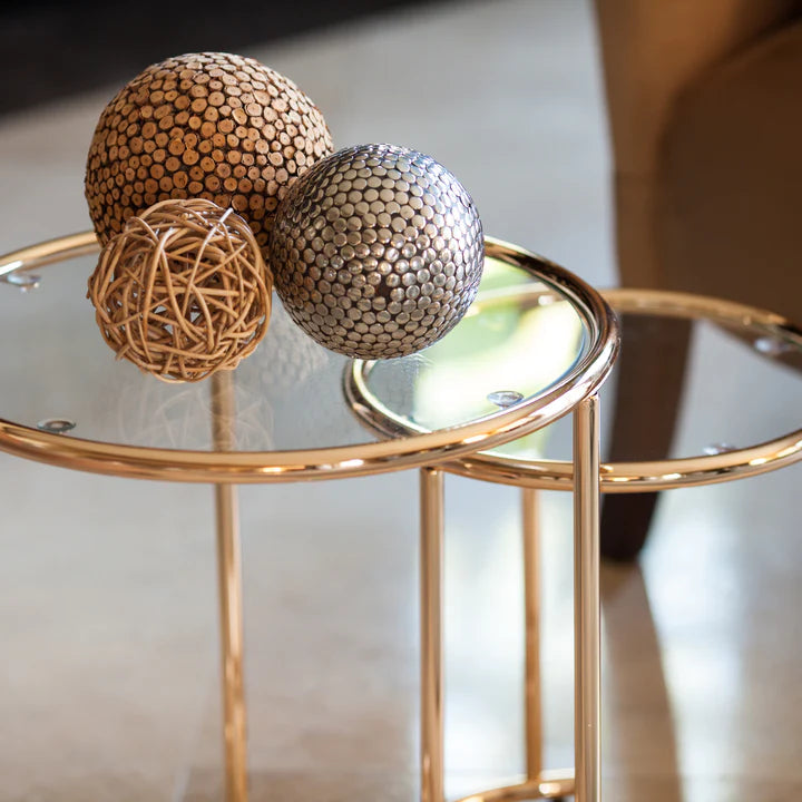 The Danya B Set of Two Nested Round Side Tables in Gold with Clear Glass is perfect for a home that wants to have a little fun with its decor. The see-through glass will add dimension to your space while adding a touch of gold color to your palette.