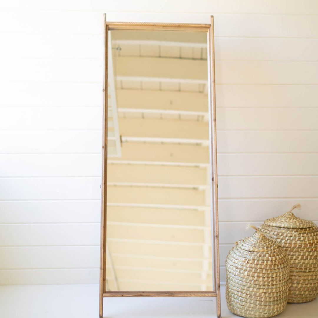 The Kalalou 63 in. Wood Framed Floor Mirror works great in bedrooms, studios, and other spacious rooms, and will catch any eye. The warm tones will bring out any greenery you own and create textures that will elevate your space.